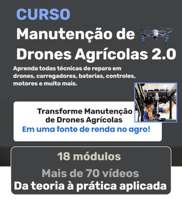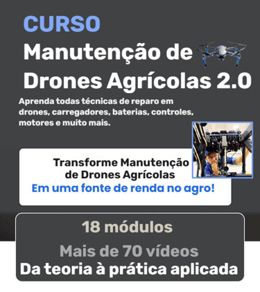 Por que técnicos, pilotos e empreendedores ficam perdidos na manutenção de drones agrícolas? O mercado está em franca expansão, mas há uma enorme escassez de profissionais qualificados. São 18 módulos. Mais de 70 vídeos.